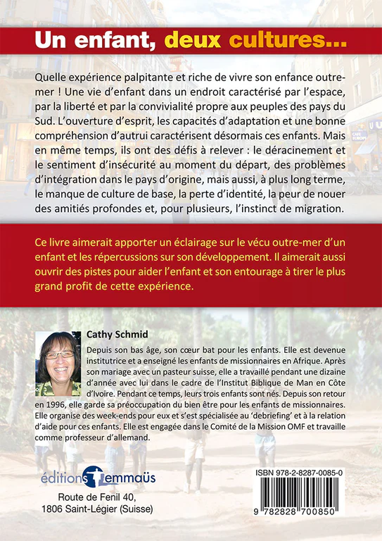 Un enfant, deux cultures » de Cathy Schmid éclaire l’expérience unique des enfants TCK (Third Culture Kids) grandissant outre-mer dans contextes missionnaires, mêlant liberté spatiale, convivialité sudiste et défis adaptation identitaire.